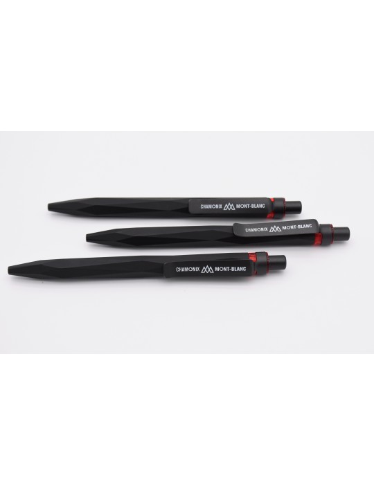 Black ink ballpoint pen. Push button with recycled plastic body. Metal clip.