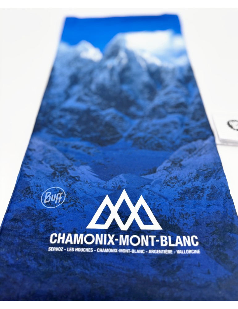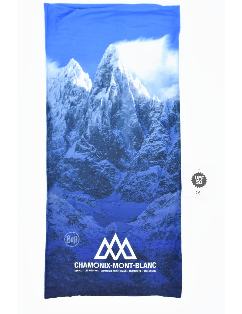 Keep your head warm with this Chamonix Mont blanc buff. Adult one size. Seamless 4-way stretch construction. Made with 95% recycled content. Made in Europe.