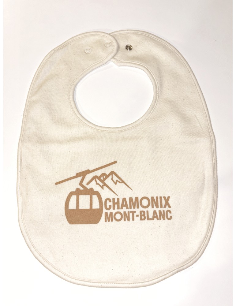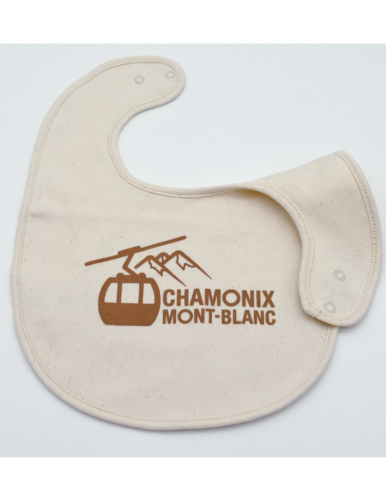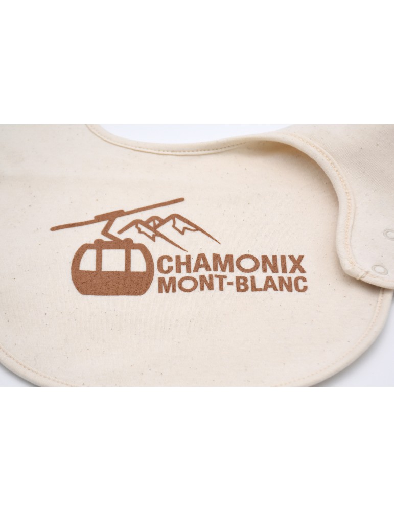 Equip your baby with a Chamonix bib with the cable car. Organic sponge cloth.