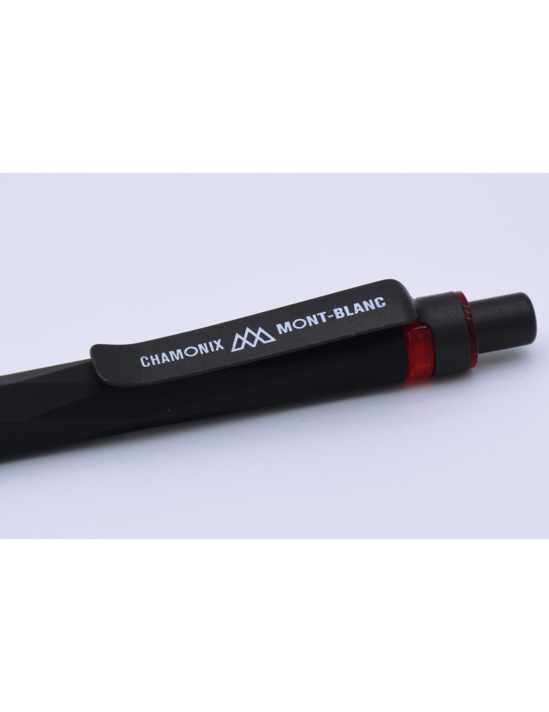 Stylo à bille encre noire. Poussoir avec corps en plastique recyclé. Clip en métal.