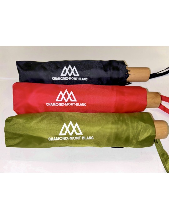 Parapluie pliable dans sa housse de protection. Manche en bois. Dimension : 24 cm. Plusieurs choix de coloris. Polyester durable.