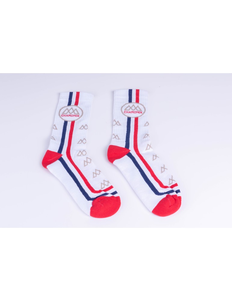 Chaussettes aux couleurs de Chamonix Mont-blanc. Taille unique de 38-44. Fabrication européenne.