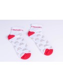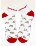 Chaussettes de sport basse, tricotée et personnalisée avec des côtes renforcées et une doublure en éponge sur la semelle. Taille unique de 38-44. Fabrication européenne. 80% coton peigné pour le renfort et 17% nylon/polyamide régénéré, 3% élasthanne pour l'extensibilité. Cartonnette recyclée quadri + polybag compostable inclus.